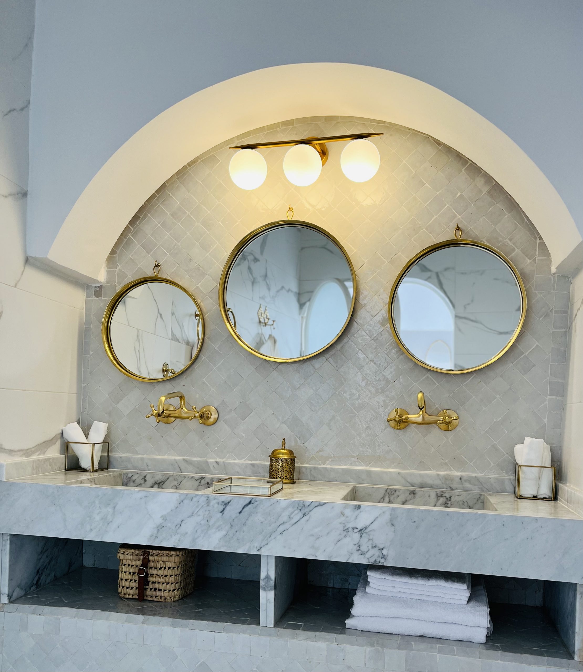 La cuisine, conçue avec finesse, combine fonctionnalité et esthétique moderne. Elle sert de cœur au Riad, reliant les trois chambres confortables. Chaque chambre, décorée avec soin, offre un cadre serein et élégant. L’une d’elles offre même un accès privilégié à la terrasse lumineuse. Les deux salles de bain luxueuses présentent un mariage parfait de marbre et de cuivre, témoignant d’un savoir-faire ancestral.